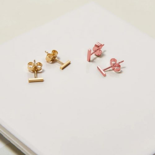 Crafted from 9k rose gold, the bar studs are the perfect addition for any stud lover, these minimal studs can be worn in a range of positions or mixed and stacked up the ear.