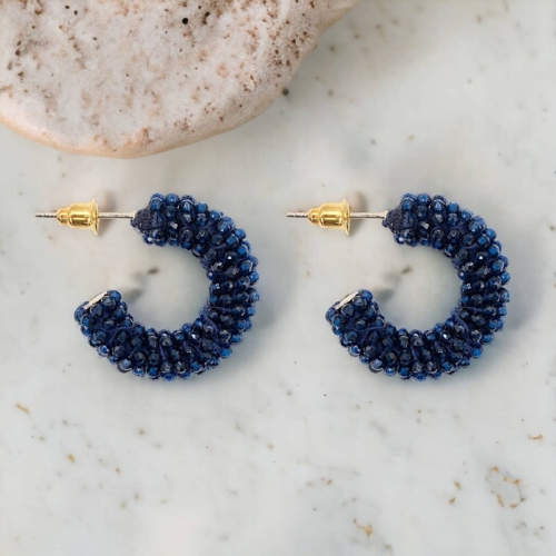 New for Summer from Narratives The Line.These Mini Navy Aurora Cluster Hoop Earrings provide you with a subtle yet sophisticated look. Crafted with sparkling crystals arranged in a unique and chic cluster design, they will elevate your style with effortless elegance. The lightweight hoops make them comfortable and perfect for any occasion.Dimensions: 2.5cm Diameter. Surgical Steel posts.
