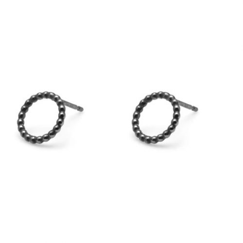Mini Sphere Circle Stud Earrings – Oxidised Silver