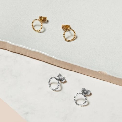 Mini Sphere Circle Stud Earrings – Silver