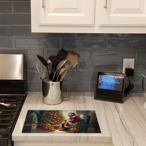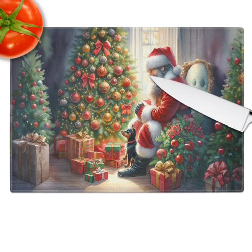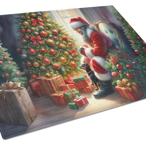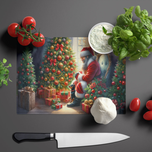Glass Cutting Board featuring breed specific Miniature Pinscher artwork. Celebrate Christmas with this Christmas Cutting Board. Introduce your kitchen to the vibrant, large Decorative Glass Cutting Board from Caroline’s Treasures. Crafted from resilient tempered glass, this board is not only a utilitarian necessity but also a colorful art piece. With its generous dimensions of 15 inches in height and 12 inches in length, it offers ample space for all your cutting needs. Every piece showcases captivating artwork from distinguished artists, bringing an aesthetic edge to your kitchen. Beyond its attractive design, this cutting board ensures your countertop stays pristine and unscathed, owing to its heat-resistant properties. Engineered with user convenience in mind, it features non-skid feet for stability, and rounded corners for additional safety. Its robust construction renders it virtually unbreakable, guaranteeing longevity. The board comes with protective feet bumpers, maintaining its position during use. This product is recommended to be hand washed only. Proudly printed and assembled in the United States, this cutting board exemplifies superior craftsmanship. With Caroline’s Treasures’ Decorative Glass Cutting Board, you’re investing in a blend of functionality and artistic flair.