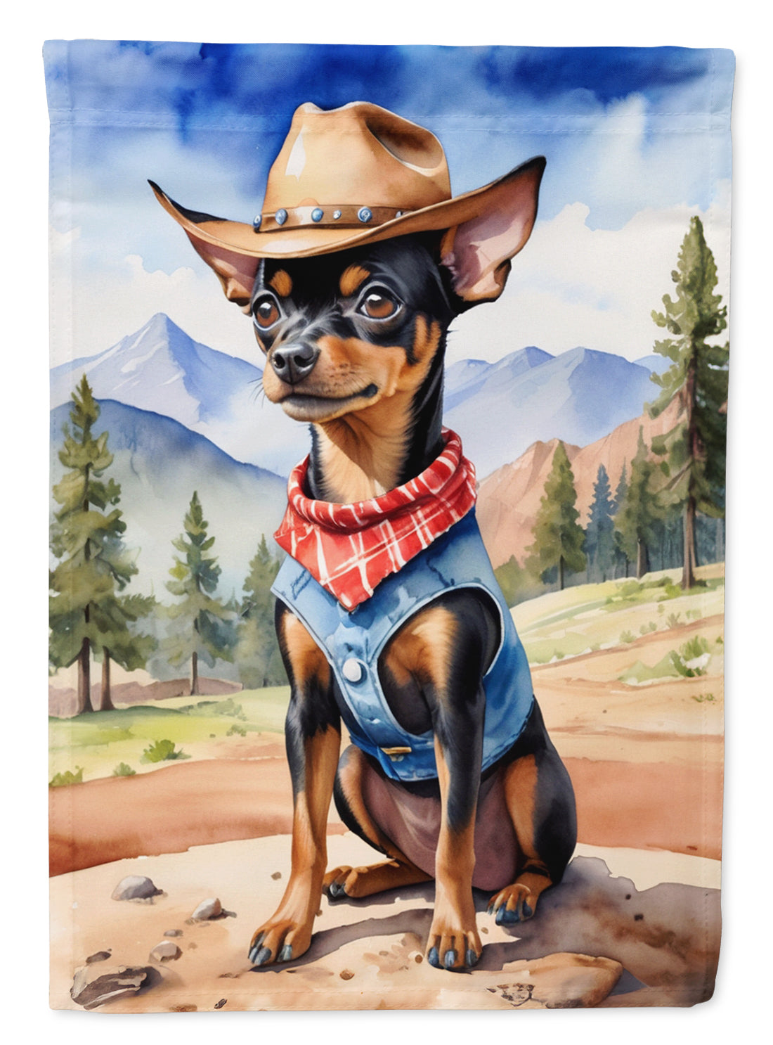 Miniature Pinscher Cowboy Welcome House Flag