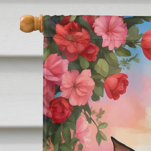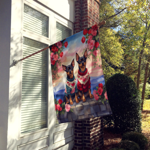 House Flag featuring breed specific Miniature Pinscher artwork. Celebrate Valentine’s Day with this Valentine’s Day Large Flag. Presenting our Heavy Duty Polyester House Size Decorative Sleeve Pole Flag, a vibrant addition to enhance the aesthetic appeal of your home. This large decorative flag, measuring approximately 28 x 40 inches, offers ample coverage and visibility. Each flag is meticulously sewn and made individually, ensuring a unique piece that may slightly vary in size. It’s a sleeve pole flag, designed to fit a standard decorative flag pole effortlessly. Please note that the flag pole and bracket are not included and should be purchased separately. What sets our flag apart is its dual-sided print. The design is mirrored on both sides of the fabric, allowing for uniform visibility regardless of the angle. Printed in full color, our flag showcases vibrant hues that truly stand out. To ensure lasting vibrancy and durability, the dyes are heat-set into the fabric. This ensures your flag remains bright and captivating through various weather conditions. Elevate the look of your home with our Heavy Duty Polyester House Size Decorative Sleeve Pole Flag!