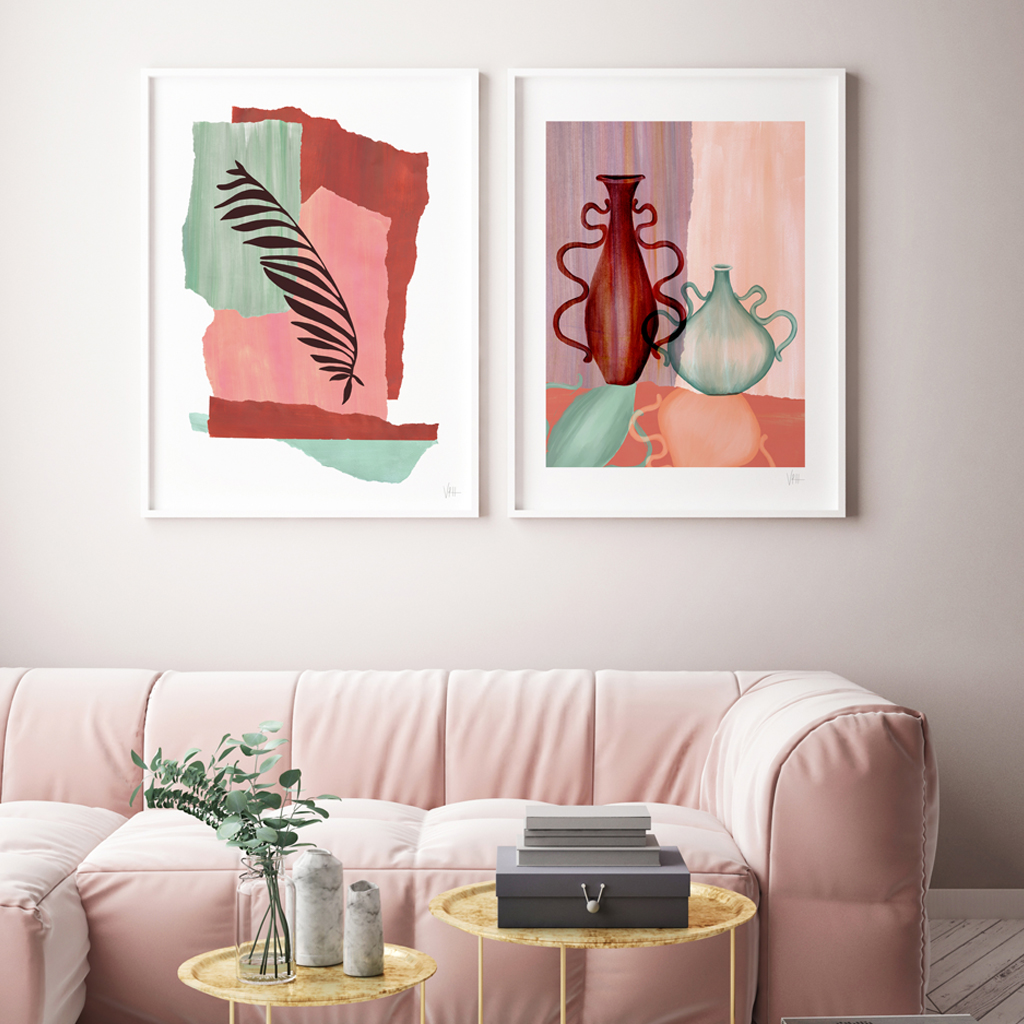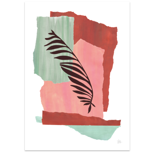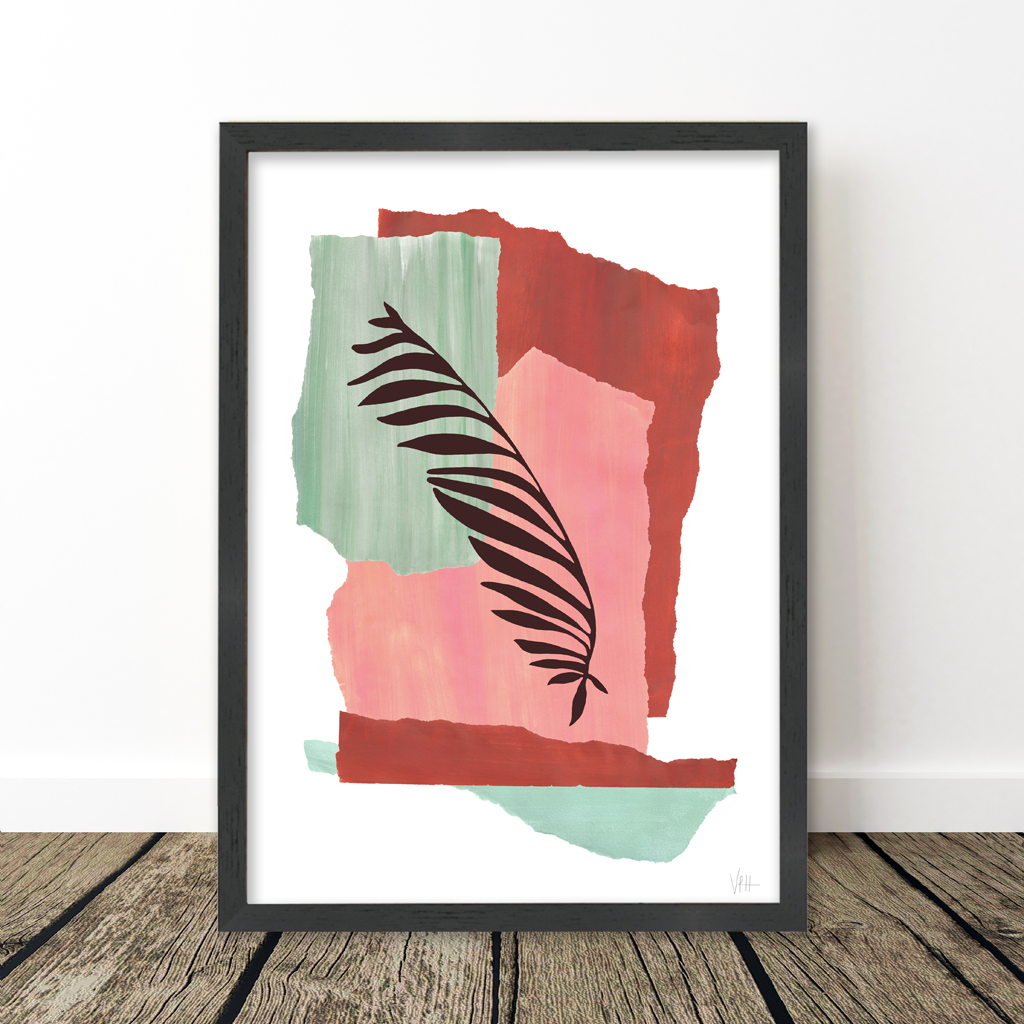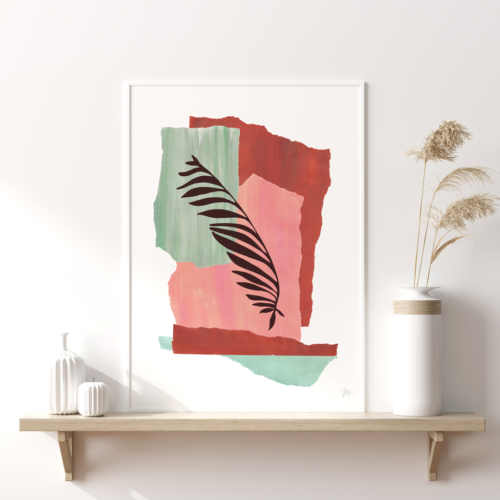 This print is a beautiful colour combination of a vibrant coral pink, pale sage green and a rusty brown. Printed on archival museum quality paper, using 12 archival pigment inks that give a rich and intense colour that will last a life time.