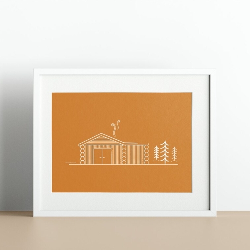 Minimalist Outdoor Prints | Monoline Nature Print | Cabin Line Art | Forest Camping Wall Decor | Cabin Art | Cabin Print | Minimal Art Print