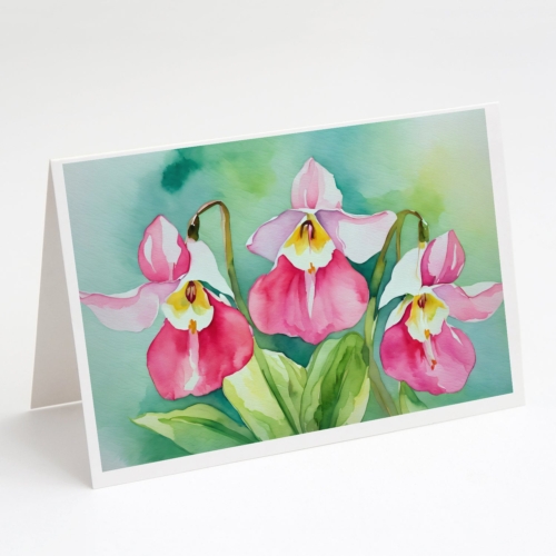 Greeting Cards Pack of 8 featuring breed specific Minnesota Pink and White Lady�s Slippers artwork. Celebrate special moments with Caroline’s Treasures Printed Greeting Card Pack. This pack includes eight beautifully folded 5×7 cards, accompanied by eight matching white envelopes. With blank interiors, these cards provide ample space for your personalized messages and heartfelt holiday greetings. Each card features captivating full-color artwork, meticulously printed in our facility on high-quality 80 lb cover stock or 216 GSM. The super smooth finish of the white cards enhances the visual impact of the artwork, creating a truly stunning presentation. Designed by our talented in-house artists or licensed artists, the artwork on these cards showcases their creativity and attention to detail. From vibrant illustrations to captivating designs, each card tells its own unique story. Whether it’s for birthdays, anniversaries, holidays, or any special occasion, Caroline’s Treasures Greeting Card Pack is the perfect way to convey your heartfelt sentiments. Share joy, love, and warm wishes with these exquisite cards and make every moment unforgettable.