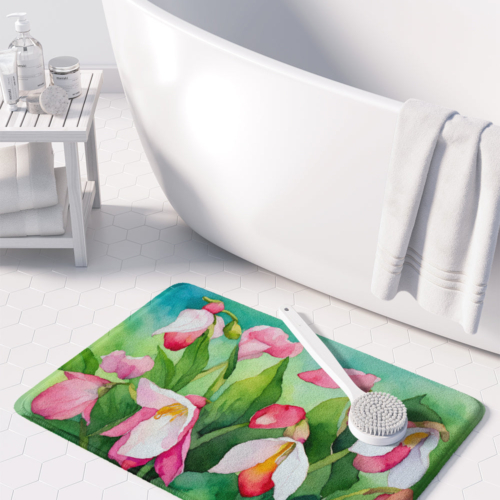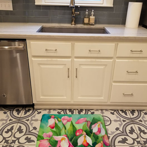 Memory Foam Kitchen Mat featuring breed specific Minnesota Pink and White Lady�s Slippers artwork. Transform your floor into a work of art with Caroline’s Treasures’ Memory Foam Mat. This mat offers not only a stunning visual appeal but also a luxurious, plush feel that’s incredibly comfortable to the touch. It’s a versatile, machine-washable mat designed for both bath and kitchen use, ensuring you experience the best in comfort and convenience. Care Instructions: Maintaining this memory foam mat is a breeze. Simply follow the care instructions on the product tag. It’s recommended to wash in cold water and dry on a low-temperature setting in the dryer. This ensures the mat retains its quality and longevity, allowing you to enjoy its beauty and comfort for a long time. Caroline’s Treasures’ Memory Foam Mat Machine Washable is the perfect blend of artistry, comfort, and practicality, making it a standout addition to any space. Upgrade your home decor with this versatile and stylish mat today.
