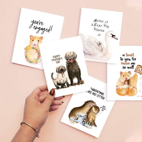 -Single card & envelope sealed in a clear cello bag or no-plastic packaging