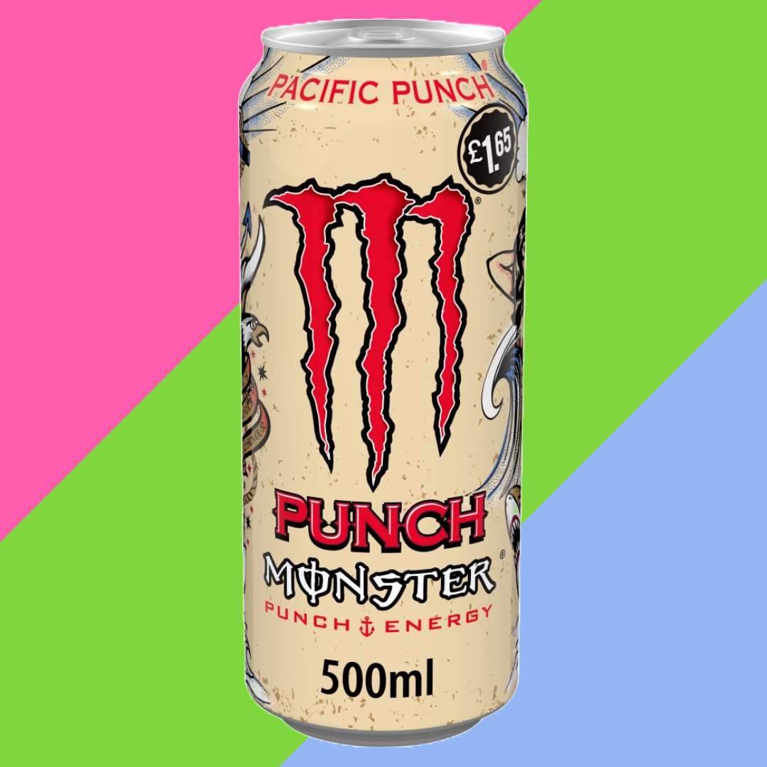 L-Carnitine + Taurine + B Vitamins This product is GMO free This product is gluten free This product is allergen free Additional Pack Information Contains added coloursContains added preservativesContains added intense sweetenersContains added caffeine Product Marketing Carbonated energy drink with 160mg Caffeine. Classic Fruit Punch flavour. Typical punch it’s not! Lighter, less sweet and more complex plus the Monster Energy blend.A flavour as deep and wide as it’s name sake the great Pacific. Naturally we added our Monster Energy blend to help put the wind in your sails and keep you steady and on course no matter how rough the seas.Unleash the Beast! We support the scene, our bands, our athletes and our fans. We back athletes so they can make a career out of their passions. We promote concert tours so our favorite bands can visit your home town. We celebrate with our fans and riders by throwing parties and making the coolest events we can think of a reality. We’re all about our fans rockin’ the Monster logo – on hats, shirts, bikes, trucks or even on themselves. Monster is way more than an energy drink. Monster is… A lifestyle in a can