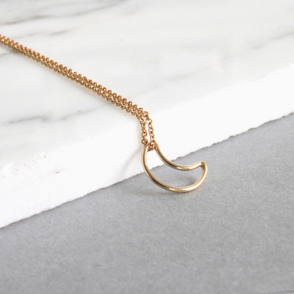 A delicate moon charm which floats delicately along fine chain. Like stars instead? Also available in our online shop.