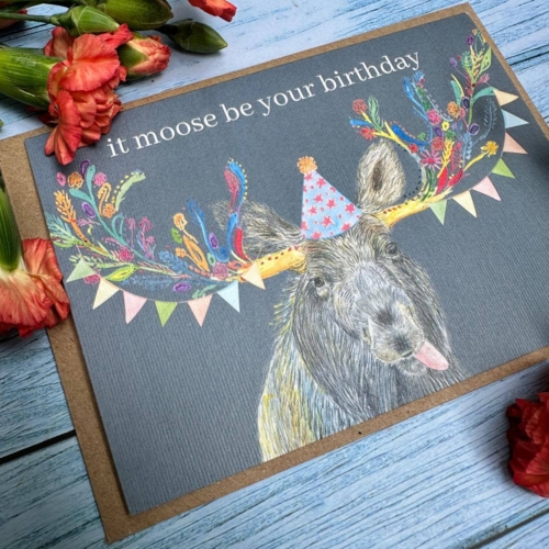 Moose Birthday Eco Friendly Card Colourful Funny Blank