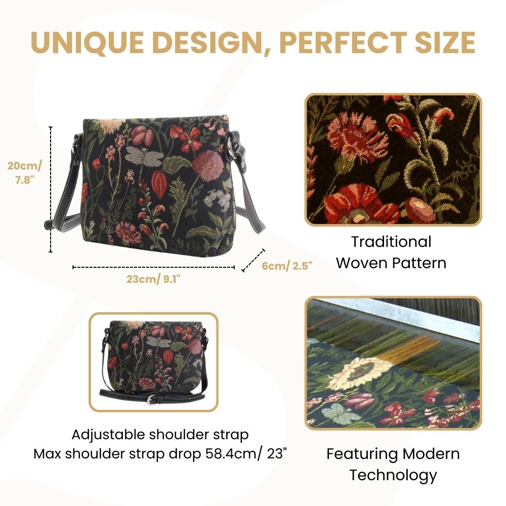 Morning Garden Black Crossbody Bag for Women