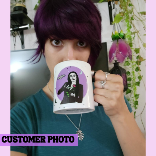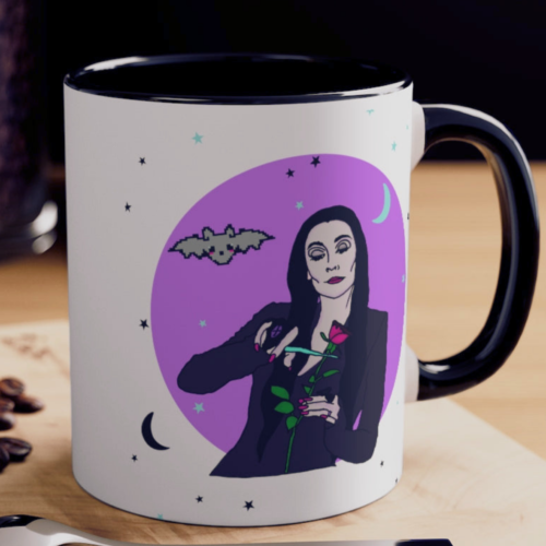 Click here to view Full Addams Family Collection Wondering how you will ever find the time to commune with the dark forces and join in their hellish crusade? Order this exclusive Haunted Fembot mug today and begin drinking coffee in such heinous quantities that time will cease to exist. Disclaimer: Haunted Fembot does not guarantee that time will cease prior to death. This mug has been known to confuse and disorient normal humans. .: White ceramic with colored interior and handle.: C-handle.: Eye-catching color contrast * Microwave & Dishwasher safe