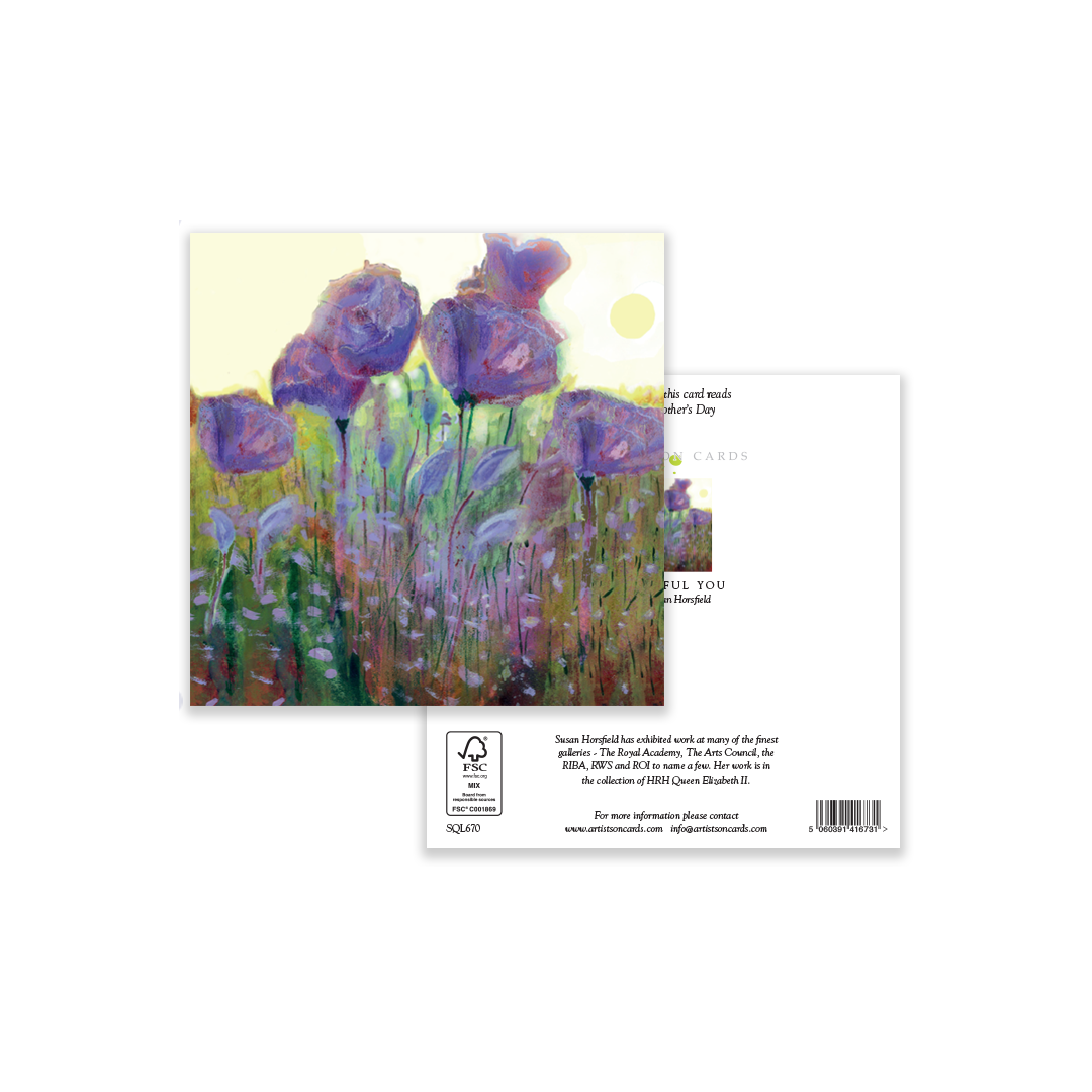 Celebrate the season with this Meadow Flowers Mother’s Day card, filled with colour and painterly charm. The design captures a glowing meadow of wildflowers in radiant purples and greens, offering a joyful and modern take on floral greetings.