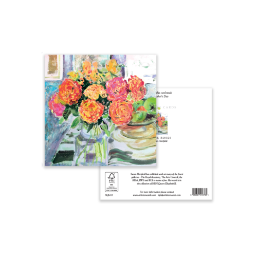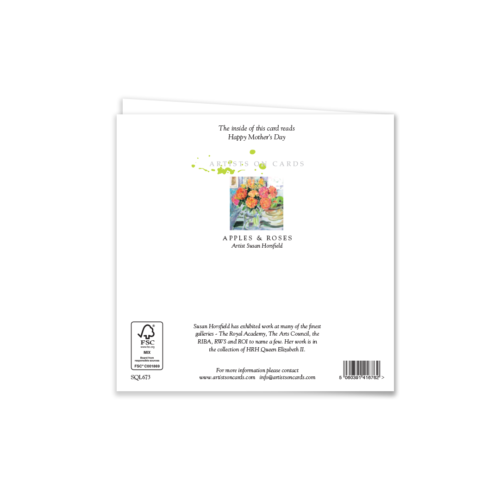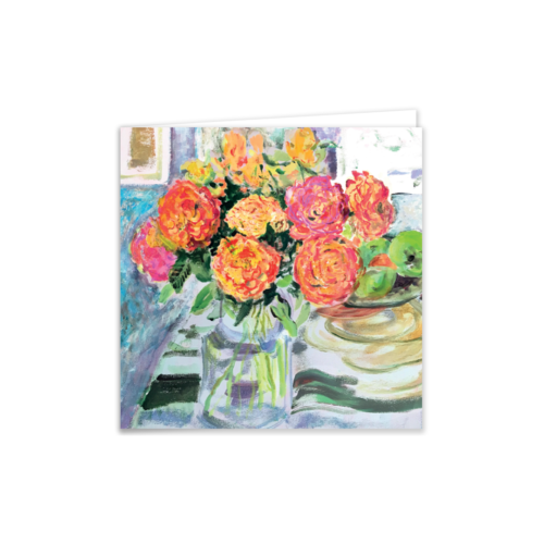 Bring timeless beauty to your retail selection with this Mother’s Day card, showcasing a vivid still life of roses in bloom alongside fresh green apples. Rich painterly textures make this design a standout choice. Perfect for customers looking to celebrate Mother’s Day or send a thoughtful message any time of year.