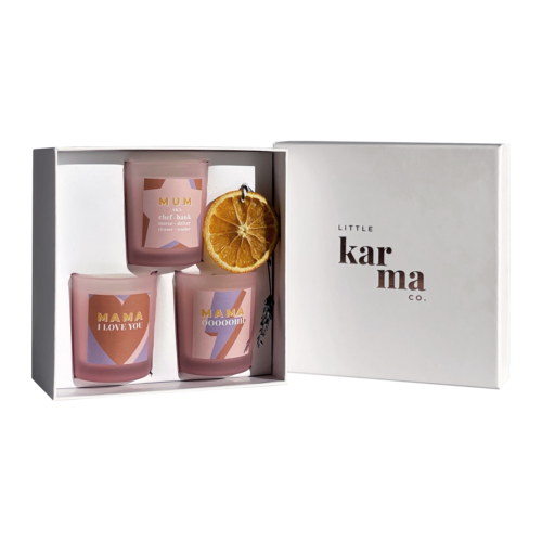 The candles in our FOR MUMS candle gift set are fragranced with essential oils only. They do not contain chemical fragrances or boosters, creating a subtle scent that never overpowers a space. They should be enjoyed in enclosed spaces to maximise the aromatherapy benefits