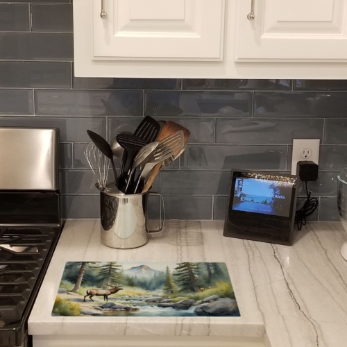 Glass Cutting Board featuring breed specific Elk artwork. Introduce your kitchen to the vibrant, large Decorative Glass Cutting Board from Caroline’s Treasures. Crafted from resilient tempered glass, this board is not only a utilitarian necessity but also a colorful art piece. With its generous dimensions of 15 inches in height and 12 inches in length, it offers ample space for all your cutting needs. Every piece showcases captivating artwork from distinguished artists, bringing an aesthetic edge to your kitchen. Beyond its attractive design, this cutting board ensures your countertop stays pristine and unscathed, owing to its heat-resistant properties. Engineered with user convenience in mind, it features non-skid feet for stability, and rounded corners for additional safety. Its robust construction renders it virtually unbreakable, guaranteeing longevity. The board comes with protective feet bumpers, maintaining its position during use. This product is recommended to be hand washed only. Proudly printed and assembled in the United States, this cutting board exemplifies superior craftsmanship. With Caroline’s Treasures’ Decorative Glass Cutting Board, you’re investing in a blend of functionality and artistic flair.