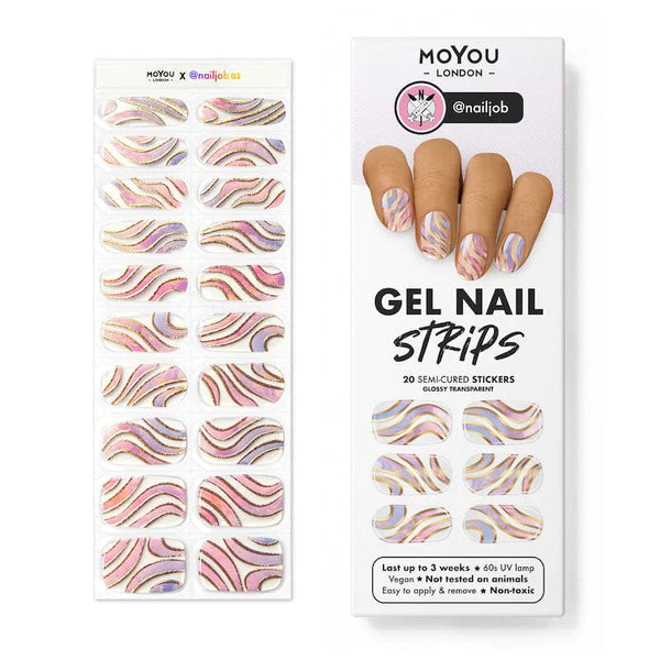 MoYou London’s Gel Strips Semi-cured Nail Strips! ⚡️PROMOTIONS⚡️ BUY 3 STRIPS and GET 1 UV LAMP FREE ★ USE CODE: FREELAMP (Add the lamp to cart before applying the code). We are thrilled to announce our exclusive collaboration with the talented nail artist, Fariha Ali, known as @nailjob on Instagram! ✨💅 Hailing from the dynamic city of LA, Fariha Ali brings her unique vision and exquisite artistry to three stunning gel nail strips. Get ready to indulge in the trendsetting style of LA with designs that embody confidence and individuality. 👉 TRANSPARENT BASE COLOUR 💅 Decorate your nails with beautiful patterns and stunning designs with MoYou London’s Gel Strips Semi-cured Nail Strips! MoYou London Gel Nail Strips are applied similarly to nail wraps, but they are made of real gel polish and therefore lasts for up to over 2 weeks without damaging the nail. ✦ Amazing nails in seconds without having to leave the house. ✦ Each box comes with 20 individual nail strips with different widths to adapt to your nails + nail file + wooden stick. ✦ UV/LED Lamp to cure the nails (60 secs). ✦ Easy to apply (like stickers) and remove. LEARN MORE! ✦ Perfect for holidays, weddings, special events, or your everyday life! ✦ Gel Nail Strips are cost saving. They offer amazing results for roughly a third of the price of other alternatives. With MoYou London Gel Nail Strips you can get fresh-looking nails without visiting the nail salon or spending hours designing your nails. There is hardly any damage to the nail! The products are semi-cured which means they have been hardened by a UV/LED light during production (not on the nails!), so you get a gel strip which can be applied as a sticker. It’s easy to remove with a wooden stick which you can dip in nail polish remover. Kindly note that the actual colour of the gel strips may vary slightly from what is displayed on your screen.