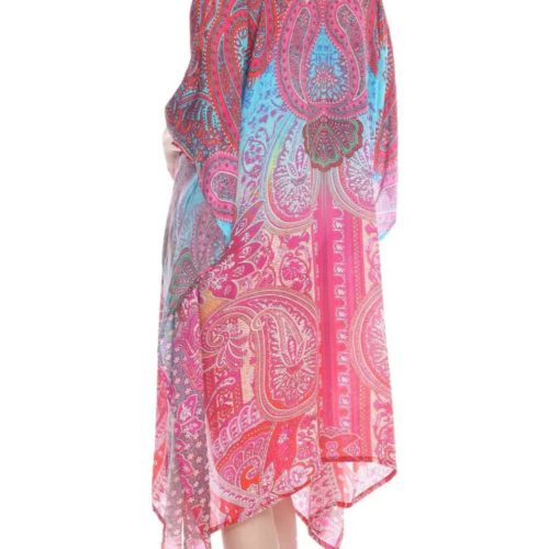 Kaftans work perfectly as beachwear Cover-Ups, carelessly-yet-carefully strewn over swimwear. Get knotty (read: naughty!) as the string of the bikini top peeps through the sensuous embroidered V-neck of the short kaftan. Check out the collection at La Moda. Sheer Cover Up Kaftan Style Beachwear, Resort Wear, Cruise 100% Viscose Silk V-Neckline, Mid-Thigh Animal Print / Multi-Color Size: One Size Washing Instruction: Dry Clean Material:100% Viscose SilkPack Details:4 pcs