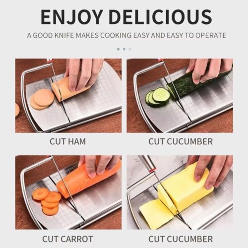 【NO INSTALLATION NECESSARY】Upgrade from classical cheese slicer wire, the all in one cheese slicer board eliminates the need for installation, eliminating the need to dismantle the cutting line to replace the cutting board of the trouble.