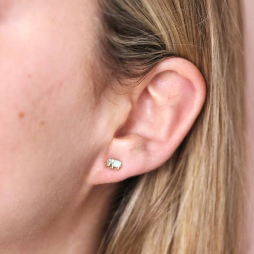 This gorgeous pair represents a mother and child, featuring a larger 14ct gold plated elephant and a smaller, blue enamel baby elephant.Fastening on hypoallergenic, sterling silver posts and butterfly pushbacks.Dimensionsmum elephant – width 9mm x height 6mm x depth 1mmbaby elephant – width 5mm x height 3mm x depth 1mmMade from14ct gold plated brass, enamel, sterling silver posts