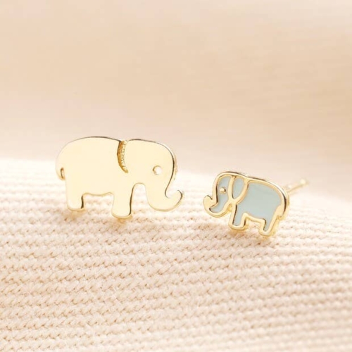 This gorgeous pair represents a mother and child, featuring a larger 14ct gold plated elephant and a smaller, blue enamel baby elephant.Fastening on hypoallergenic, sterling silver posts and butterfly pushbacks.Dimensionsmum elephant – width 9mm x height 6mm x depth 1mmbaby elephant – width 5mm x height 3mm x depth 1mmMade from14ct gold plated brass, enamel, sterling silver posts
