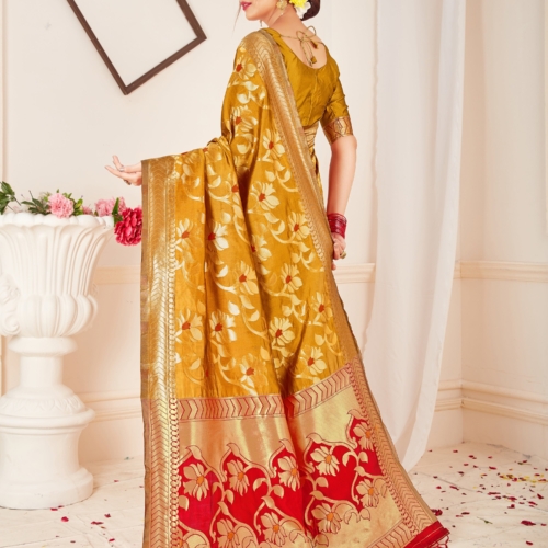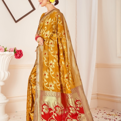 Saree Color : Mustard Blouse Color : Mustard Saree Length : 5.5 Meter Blouse Length : 0.8 Meter Saree Fabric:Banarasi Art Silk Blouse Fabric: Banarasi Art Silk Saree Work : Woven