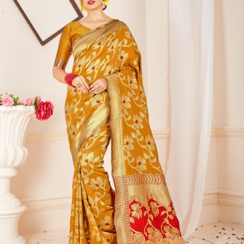 Saree Color : Mustard Blouse Color : Mustard Saree Length : 5.5 Meter Blouse Length : 0.8 Meter Saree Fabric:Banarasi Art Silk Blouse Fabric: Banarasi Art Silk Saree Work : Woven