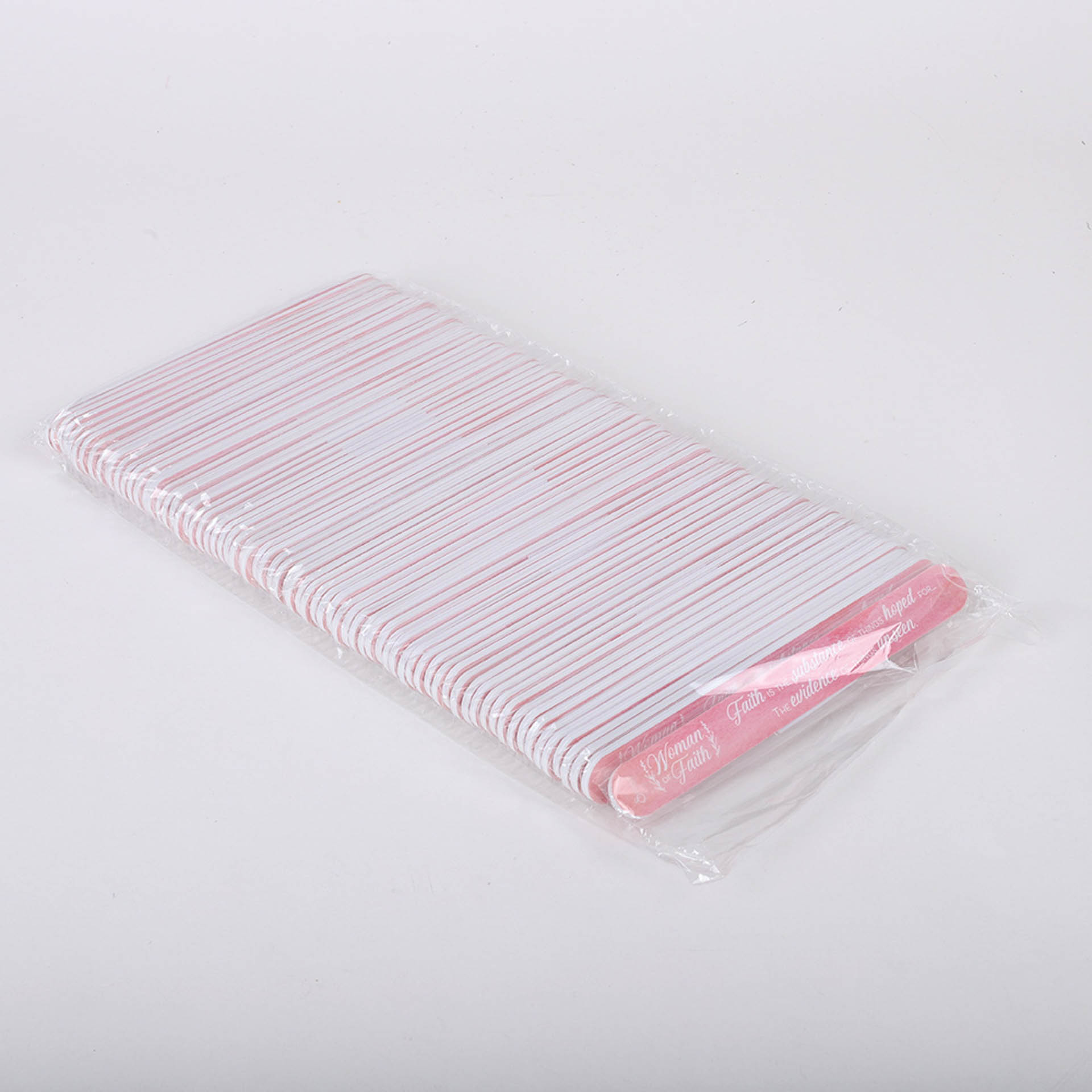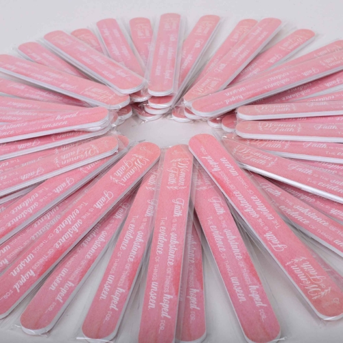 Elevate your nail care with our 72-pack of premium nail files, each featuring a soft pink base and the empowering phrase Woman of Faith. Complemented by a beautiful quote about faith, these nail files offer more than just functionalityóthey provide daily inspiration and encouragement. Crafted from high-quality, sturdy materials, they ensure long-lasting durability for shaping and smoothing both natural and artificial nails.
