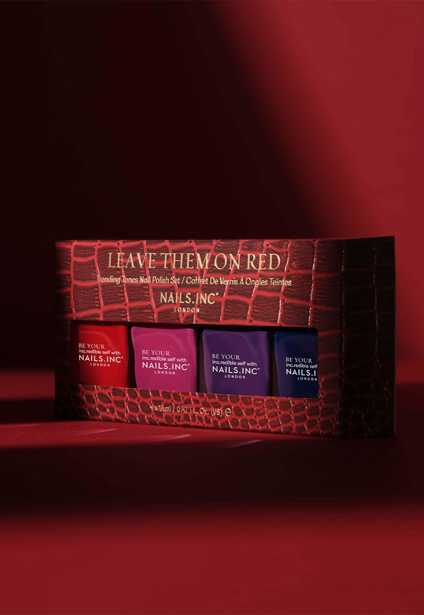 The shades of the season? Check out this set! We’ve selected the richest rouges and best blues, swatched from the catwalks. Each polish is formulated in the Nails.INC longwear formula and features the patented wide hugging brush for flawless application. Now your tips are totally trending…