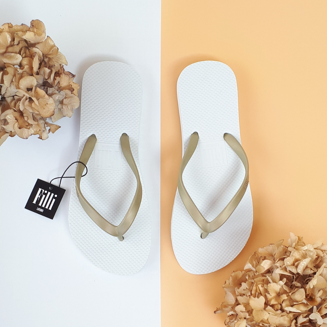 Textured rubber soles and a smooth foot hugging strap with our Filli logo for a secure fit.