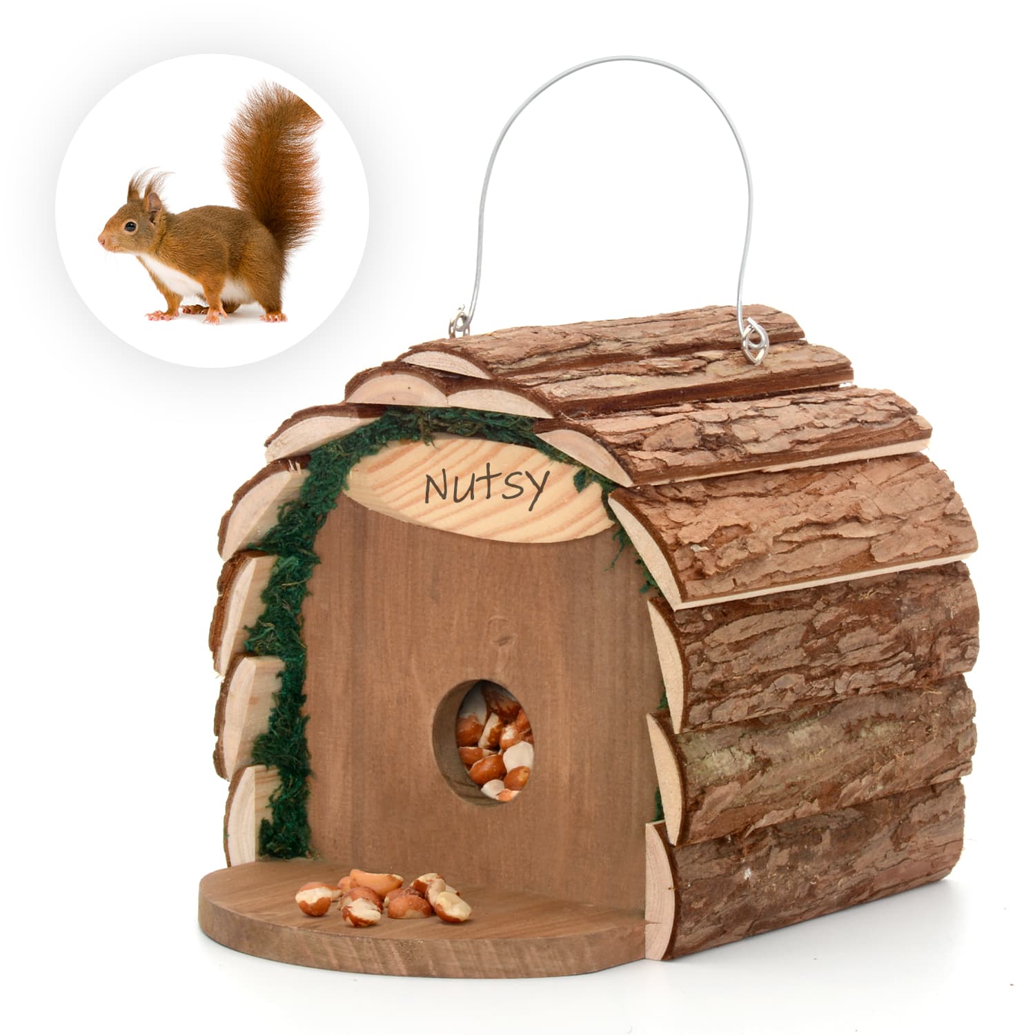 It holds around 750g of peanuts, but you can fill it with other foods they like such as grapes, corn, squash, zucchini, pumpkin, strawberries, carrots, apples or seeds.