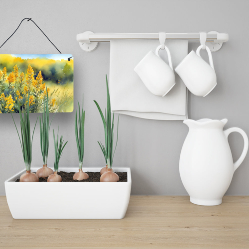 Wall or Door Hanging Prints featuring breed specific Nebraska Goldenrod artwork. Add a splash of color and artistic flair to any indoor or outdoor space with our Aluminum Artwork Prints. These unique prints, featuring full-color, multicolor designs, provide a versatile decorative touch that can enhance a kitchen, bathroom, office, outdoor patio, or even the front door area. Each print measures 8 inches by 12 inches, making it the perfect size to catch the eye without overwhelming your space. Constructed with durability in mind, these prints can be placed outdoors and withstand direct sunlight for a significant amount of time before any fading begins. Designed for easy installation, each print features a black hanging rope and has a lightweight profile. This allows for quick hanging with just about any nail or screw. For safety and aesthetic appeal, the print’s corners are gently rounded. The back of the print showcases a brushed silver color for an added touch of elegance. Rust and fade-resistant, these Aluminum Artwork Prints are not only beautiful but are also built to last. Elevate your space with these stunning prints, crafted with care and artistic passion.