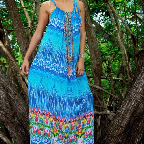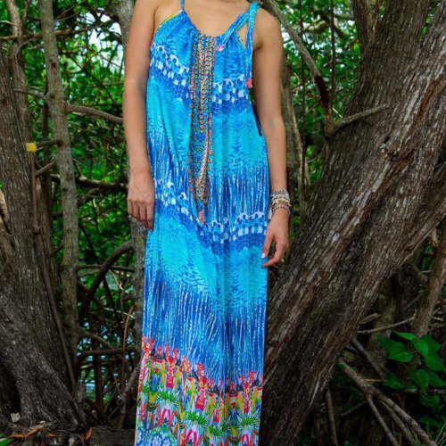 One Size Goga resort wear from the house of La Moda takes the shape of easy breezy designer dresses. This flowy halter neck maxi dress makes sure you keep up with the latest fashion trends. The collection at La Moda balances ease and elegance in equal measure. • Halter Neck Maxi Dress • Cover Up, • Beachwear, Resort Wear, Cruise • 100% Polyester • Printed, Multi-Color • Size: One Size • Washing Instruction: Hand Wash with Cold Water, Tumble Dry, Do not Iron