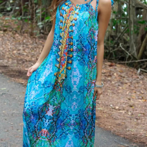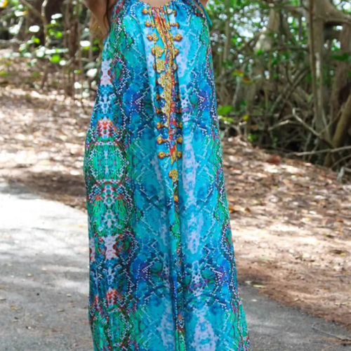 Resort wear from the house of La Moda takes the shape of easy breezy designer dresses. This flowy halter neck maxi dress makes sure you keep up with the latest fashion trends. The collection at La Moda balances ease and elegance in equal measure. • Halter Neck Maxi Dress • Cover Up, • Beachwear, Resort Wear, Cruise • 100% Polyester • Printed, Multi-Color • Size: One Size • Washing Instruction: Hand Wash with Cold Water, Tumble Dry, Do not Iron Pack of 4 Pcs
