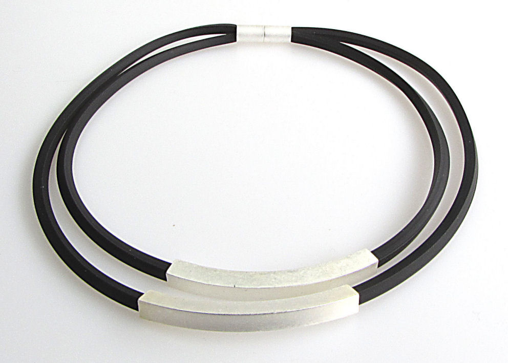 Necklace 2-row with mat silverplated parts and magnet clasp