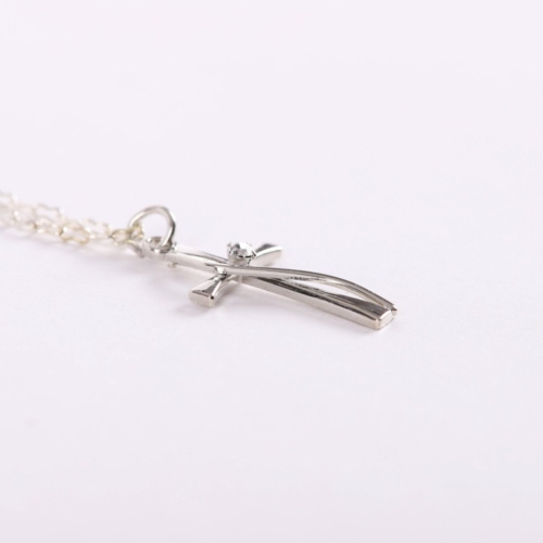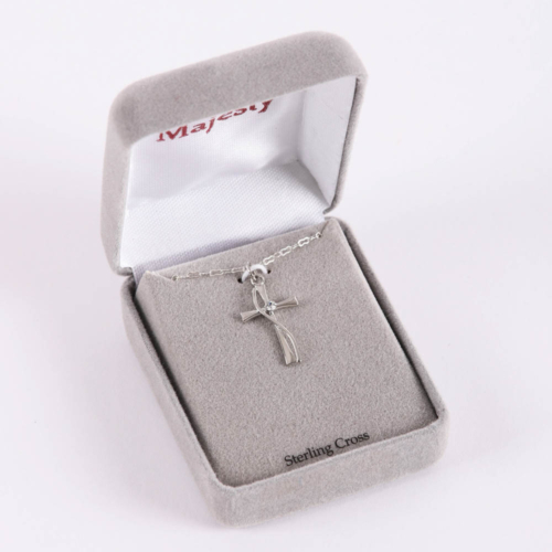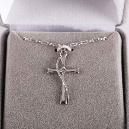 Necklace – Sterling Silver – Tapered Cross with Cubic Zirconia – 18 Silver