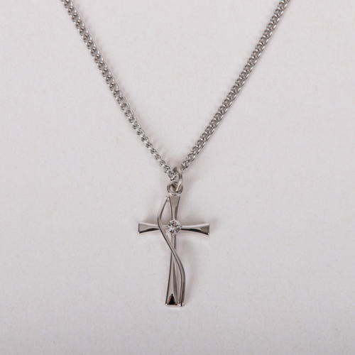 Necklace – Sterling Silver – Tapered Cross with Cubic Zirconia – 18 Silver
