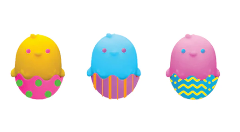 A sensory squish for your little chicks! Kids will ‘crack up’ when playing with these ‘egg-straordinary’ NeeDoh Chicka DeeDoos, featuring a squeezable chick inside a spotty, stripey or zigzag eggshell. And the eggshells are removable for added play value. Beyond the fun factor, Nee Doh can improve children’s focus and concentration, and bring them into the present moment. They’re also a helpful stress reliever and self-regulatory toy to calm feelings of anxiety. NeeDoh Chicka DeeDoos are filled with a stretchy dough-like material that is non-toxic and safe for kids to squish. Available in 3 assorted colours and styles (1 chosen at random). A perfect Easter gift or stocking filler. Suitable for 3+ years. NeeDoh Chicka DeeDoos – product features: Easter-themed NeeDoh chick Available in 3 styles (1 picked at random) Made from a non-toxic, dough-like material Suitable for 3+ years