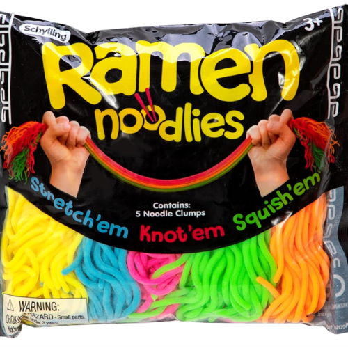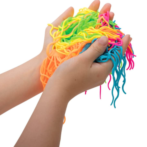 Schylling’s Noodlies is a colourful fidget toy that satisfies the fun of playing with food – without the mess. Pull, knot, stretch, squeeze and mush the crimped textured elastic ramen noodles for lots of fun. Noodlies come in five fluorescent shades and are made from a non-toxic, dough-like material that always bounces back to its original shape. Share with friends or squeeze a handful if you’re feeling stressed. Ideal for on the go fidget toy fun or as an anxiety reliever. Perfect for safe, stretchy fun. Ideal as a gift or stocking filler. Suitable for 3 years +. NeeDoh Noodlies – product features: Fluorescent crimped ramen noodlies Ideal fidget toy Neon green, blue, pink and orange elastic noodles Made from a non-toxic, dough-like material 3 years +