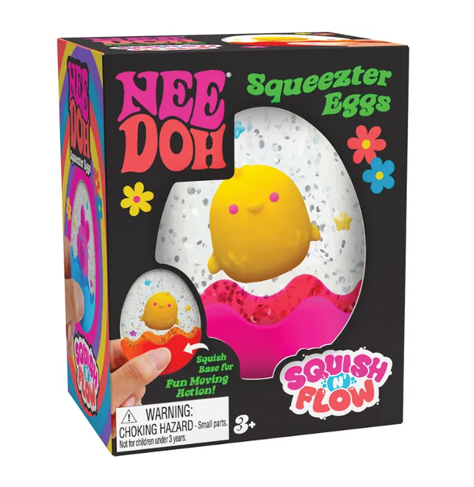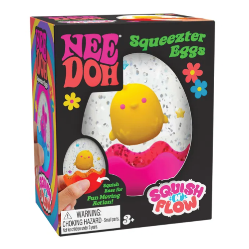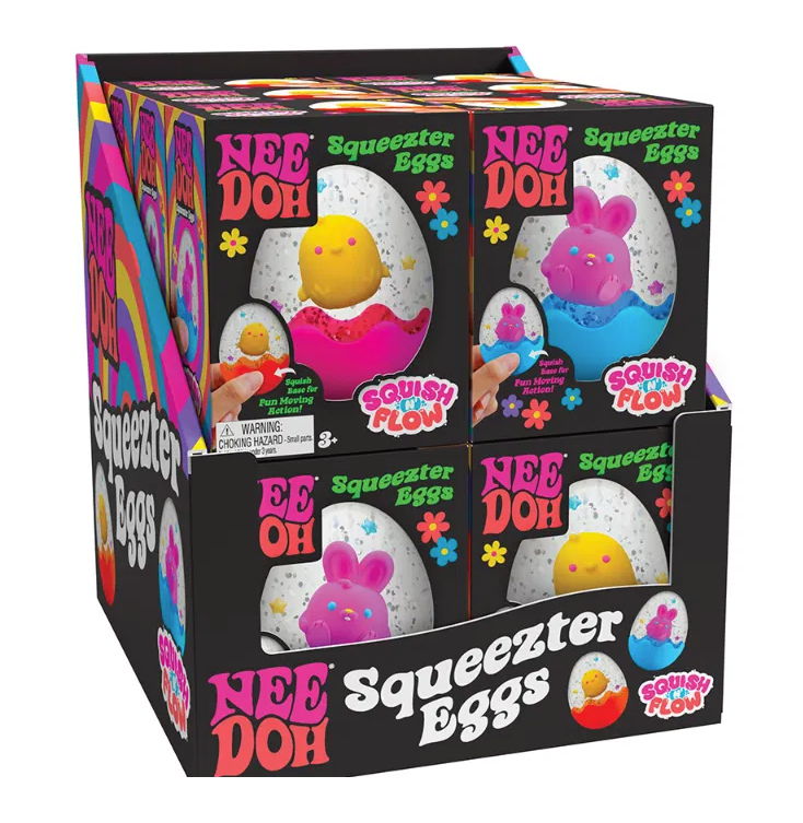 No bunny compares to Schylling’s super satisfying NeeDoh Squeezter Eggs! Squish the base of these sensory spectacles and watch the Easter bunny or chick dance around the glitter and confetti. The Squeezter Egg is available in five assorted colours with either a bunny or chick character inside (one chosen at random). Perfect for little hands and big imaginations, these colourful fidget toys are an egg-cellent treat for Easter baskets or springtime surprises. NeeDohs can serve as handy calming aids for kids, helping to reduce stress, improve focus, and manage anxiety. NeeDoh Squeezter Eggs are filled with a stretchy, dough-like material that is non-toxic and safe for children to squish. A fabulous Easter gift or stocking filler for kids. Suitable for 3+ years. Easter egg fidget toy Bunny or chick character inside Available in 5 colours (1 picked at random) Non-toxic, dough-like filling Suitable for 3+ years