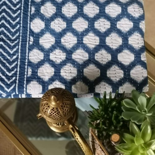 Our Neelamber collection is a primal love for Indigos and the shades of Blue that dress the vivid sky each day. Its a rendition to the beauty of Nature. The reversible side is equally beautiful and usable.