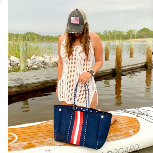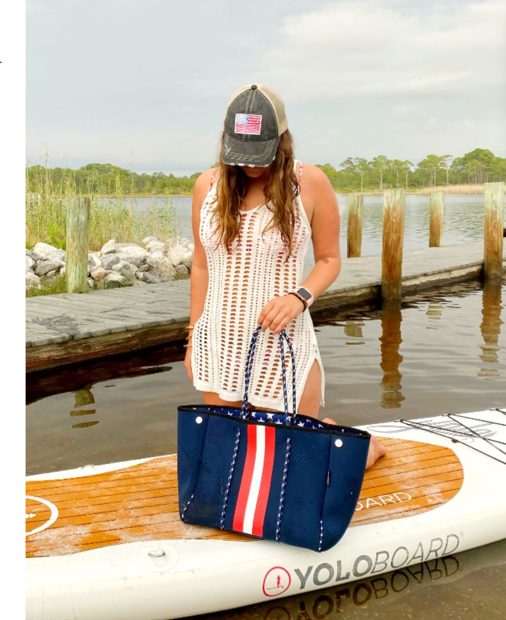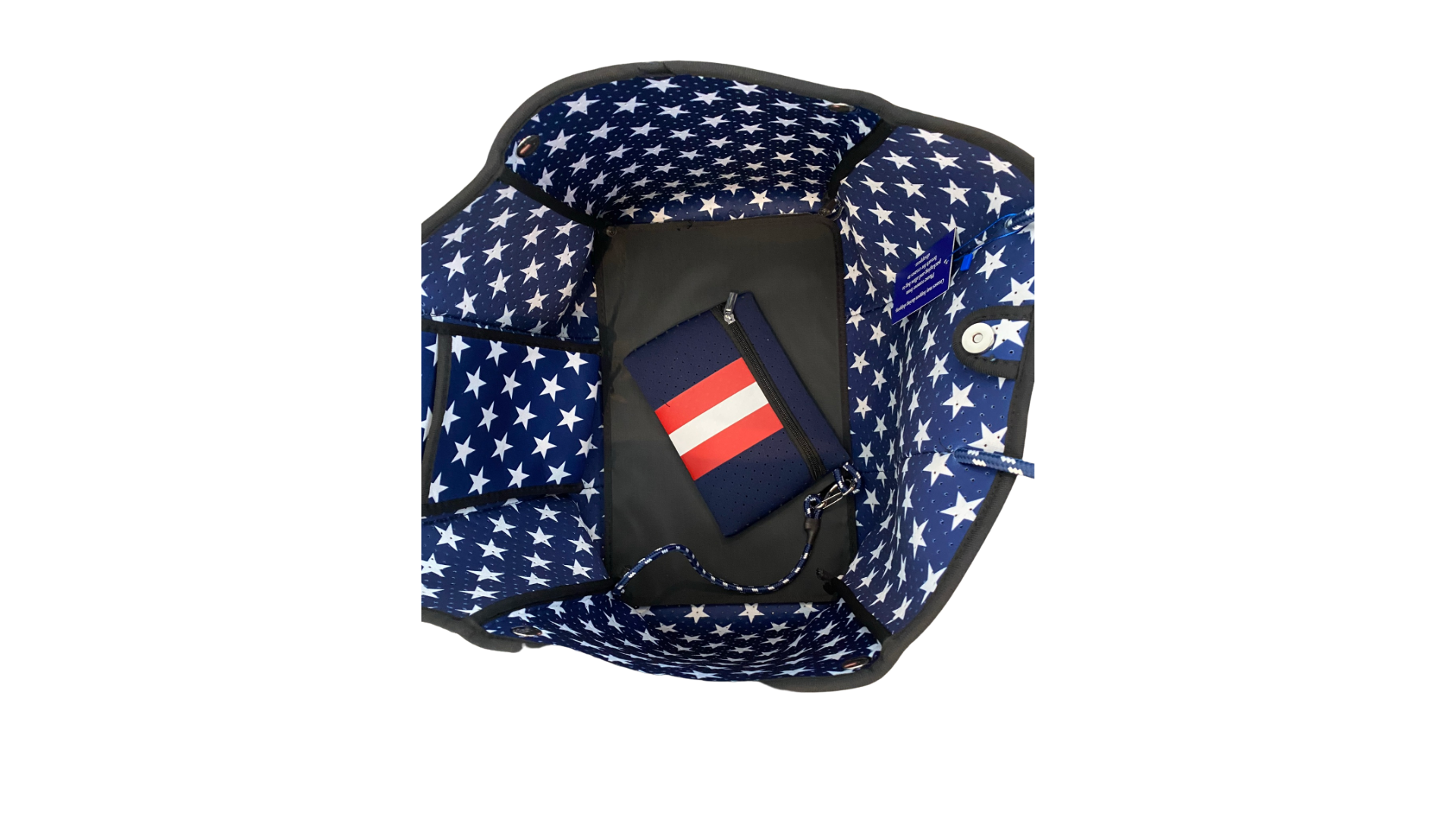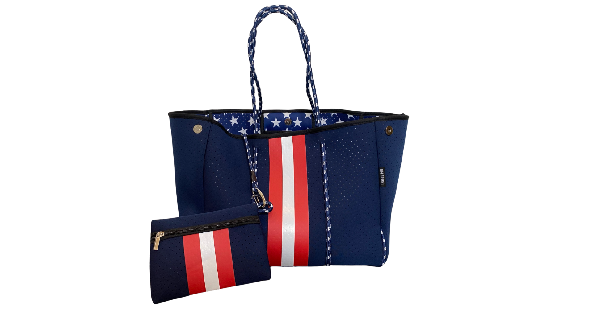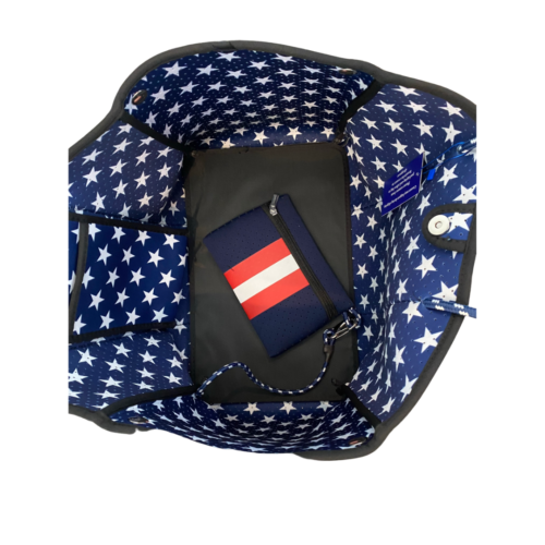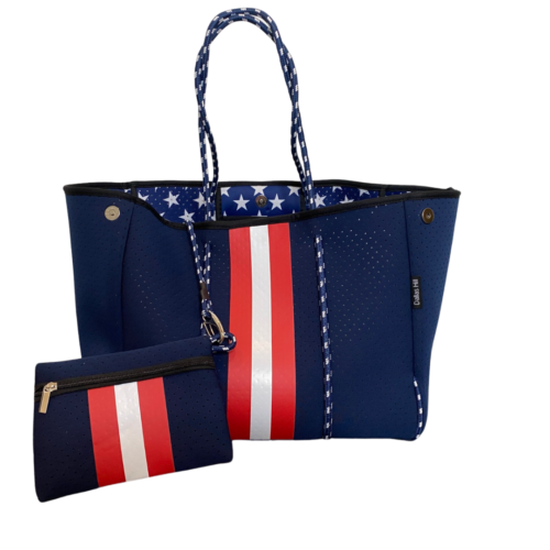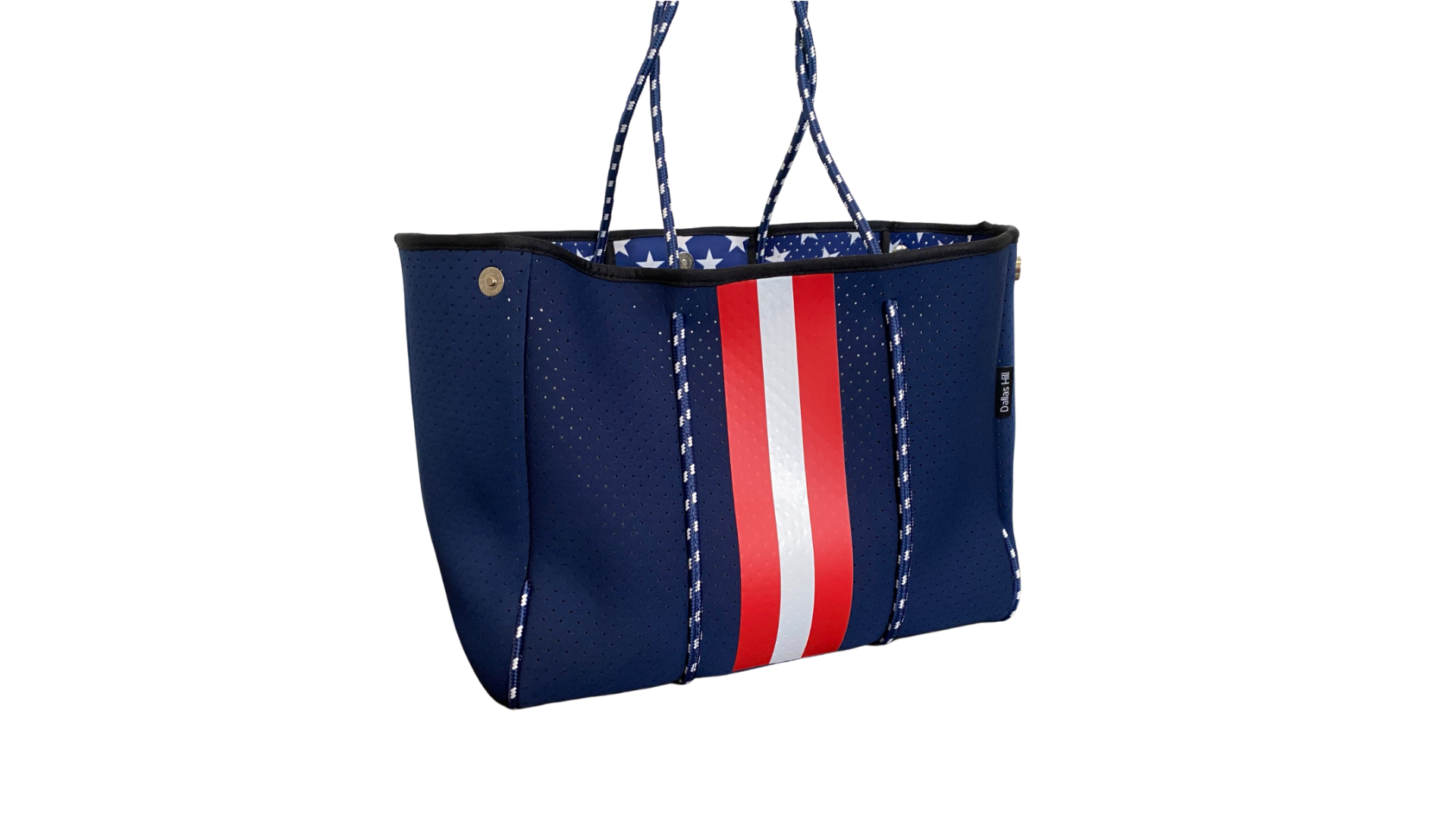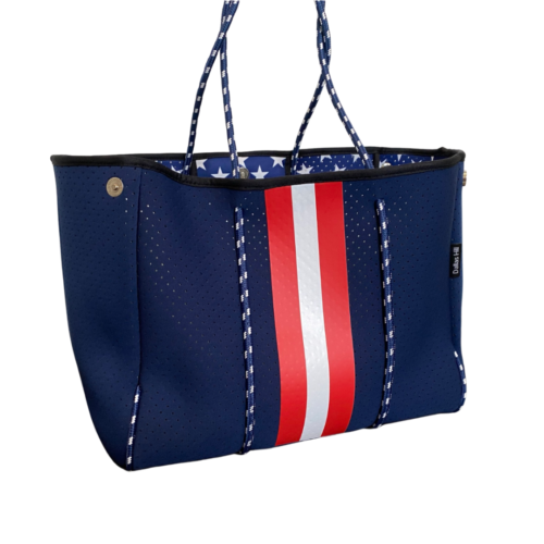 Neoprene Tote Bag Navy Red/White Stripes Interior Starts