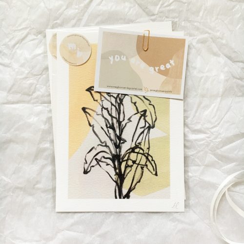 printed onto quality textured card, packaged with re-purposed cardboard backing in a biodegradable sleeve