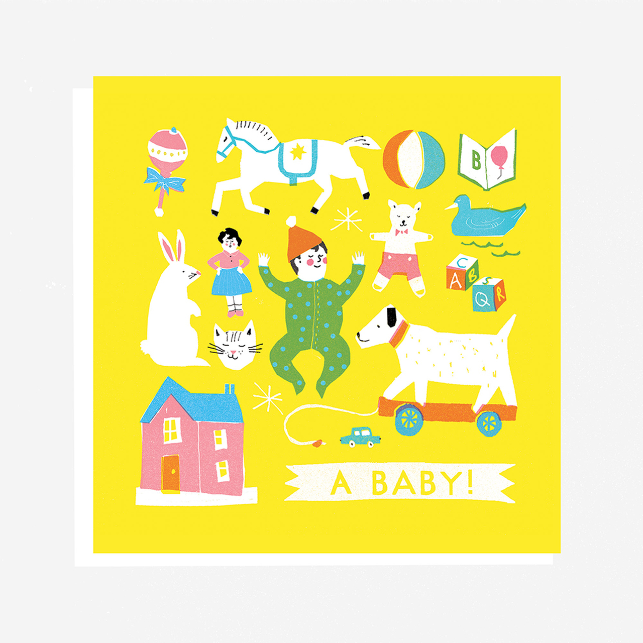 Perfect for a new baby boy or baby girl, this bright and cheerful card is a great gift to give to some new parents.