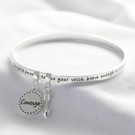 New ‘Bold And Brave’ Meaningful Word Bangle Silver
