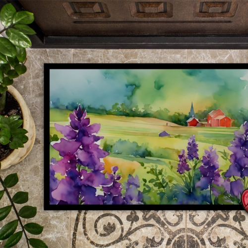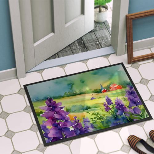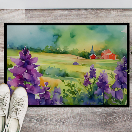 Doormat featuring breed specific New Jersey Violet artwork. Welcome your guests in style with our Artwork Door Mat, designed to withstand almost any weather condition. This mat, measuring approximately 24 by 36 inches, is held together by durable black binding tape. Its top layer, composed of polyester felt, is dyed with the eye-catching image you see on the mat. A few layers below provide the mat with stability, while its rubber bottom is stamped to help prevent slipping and ensures safety. Our mat works wonderfully as both an indoor or outdoor door mat. For cleaning, simply hose it off with water or use a power washer – no need for any cleaner that produces suds. Avoid scrubbing with a brush, instead, opt for the vacuum on floor setting. Designed manufactured and printed in the USA, this mat is a perfect addition to your porch, outdoor kitchen, entryway, or any indoor space. Its unique design makes it a charming decorative rug that greets your guests and adds a stylish touch to your home decor.