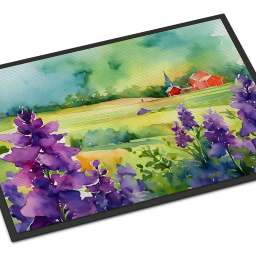Doormat featuring breed specific New Jersey Violet artwork. Welcome your guests in style with our Artwork Door Mat, designed to withstand almost any weather condition. This mat, measuring approximately 24 by 36 inches, is held together by durable black binding tape. Its top layer, composed of polyester felt, is dyed with the eye-catching image you see on the mat. A few layers below provide the mat with stability, while its rubber bottom is stamped to help prevent slipping and ensures safety. Our mat works wonderfully as both an indoor or outdoor door mat. For cleaning, simply hose it off with water or use a power washer – no need for any cleaner that produces suds. Avoid scrubbing with a brush, instead, opt for the vacuum on floor setting. Designed manufactured and printed in the USA, this mat is a perfect addition to your porch, outdoor kitchen, entryway, or any indoor space. Its unique design makes it a charming decorative rug that greets your guests and adds a stylish touch to your home decor.