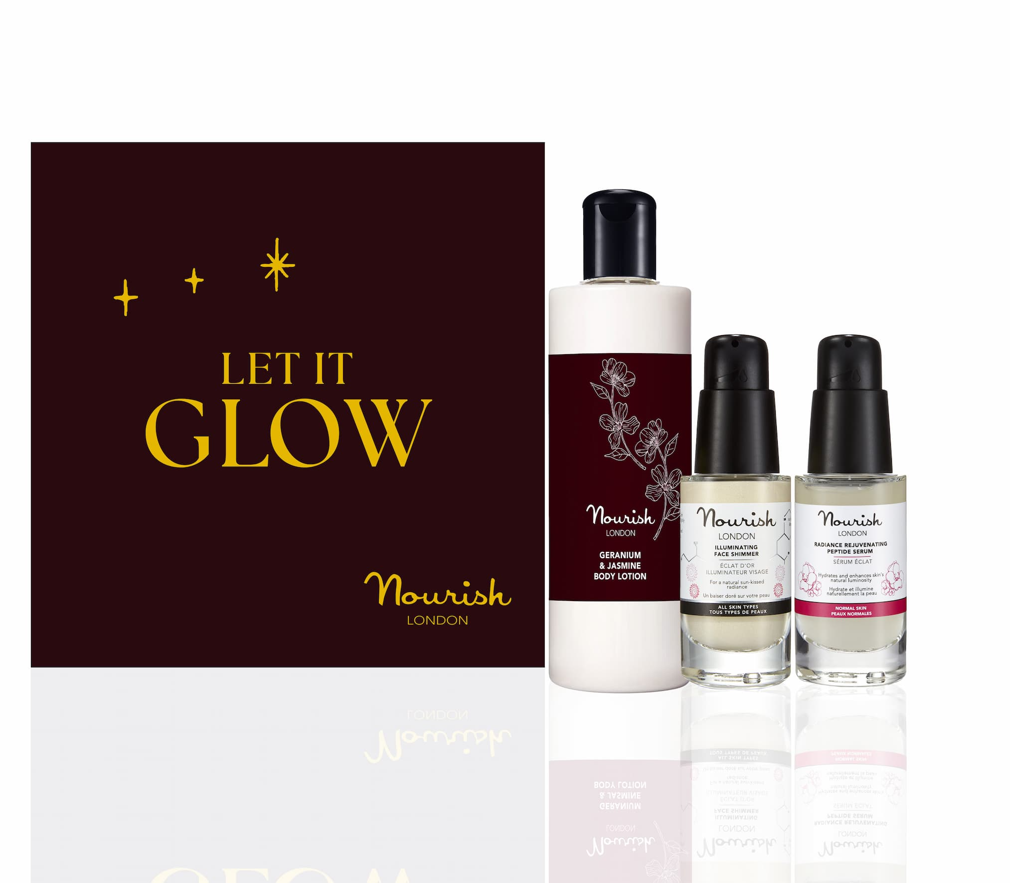This radiant trio brings a touch of glow from head to toe. Featuring the Illuminating Face Shimmer, Radiance Rejuvenating Peptide Serum and our indulgent Jasmine & Geranium Body Lotion, this festive set nourishes the skin while leaving it beautifully luminous.