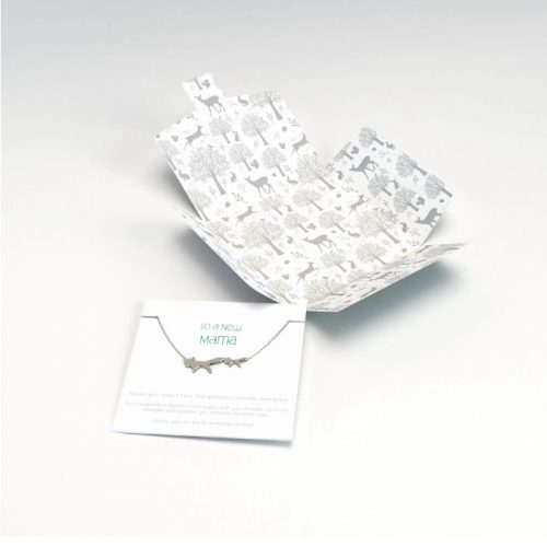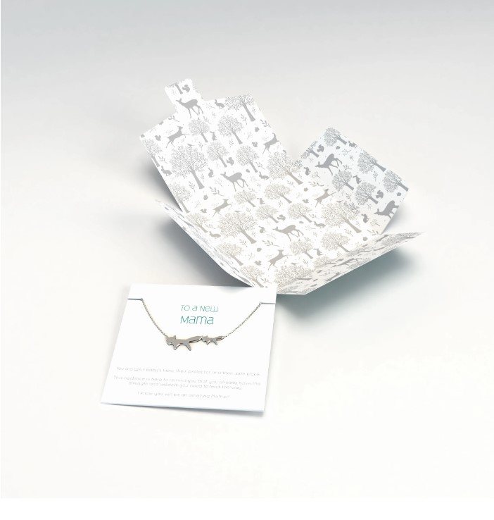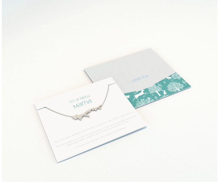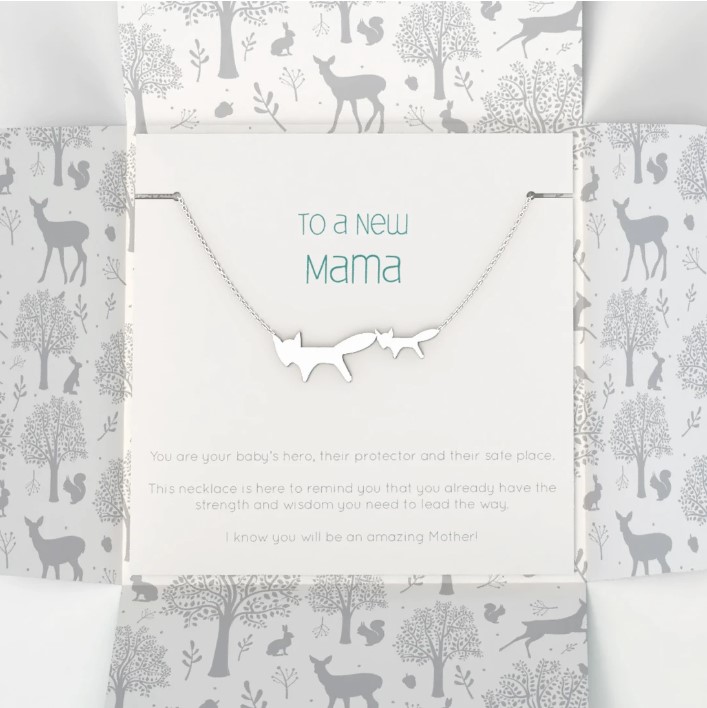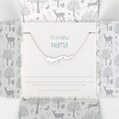 This dainty necklace comes in beautifully designed gift packaging with inspirational words to inspire any new mummy. The chain has two loops at 40cm/16” and 45cm/18” so the new mummy can choose the length that suits her. The Mama and Baby Fox together measure just under 4cm across.